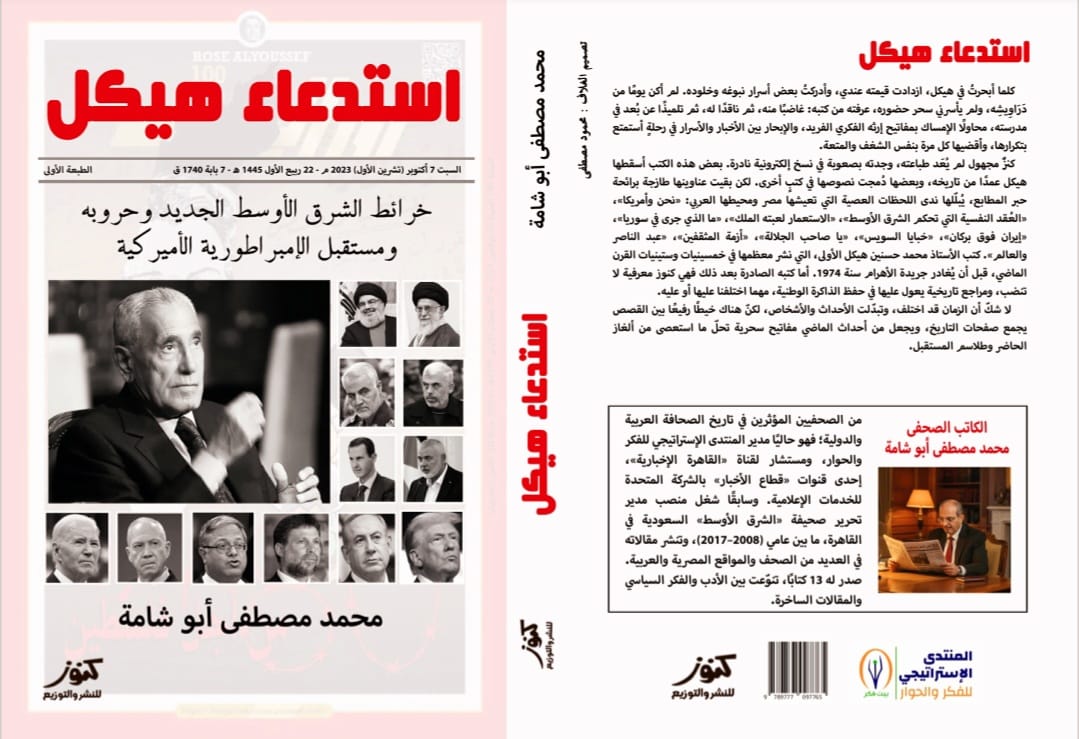 ويقول مؤلف الكتاب: «كتاب (استدعاء هيكل) هو محاولة للفهم قبل الحكم، وللتفسير قبل الاصطفاف؛ فنحن نعيش لحظة تتكاثف فيها الحروب، وتُعاد فيها صياغة الخرائط، ويبدو فيها التاريخ كأنه يستدير على نفسه ليطرح الأسئلة ذاتها بأدوات أشد قسوة».