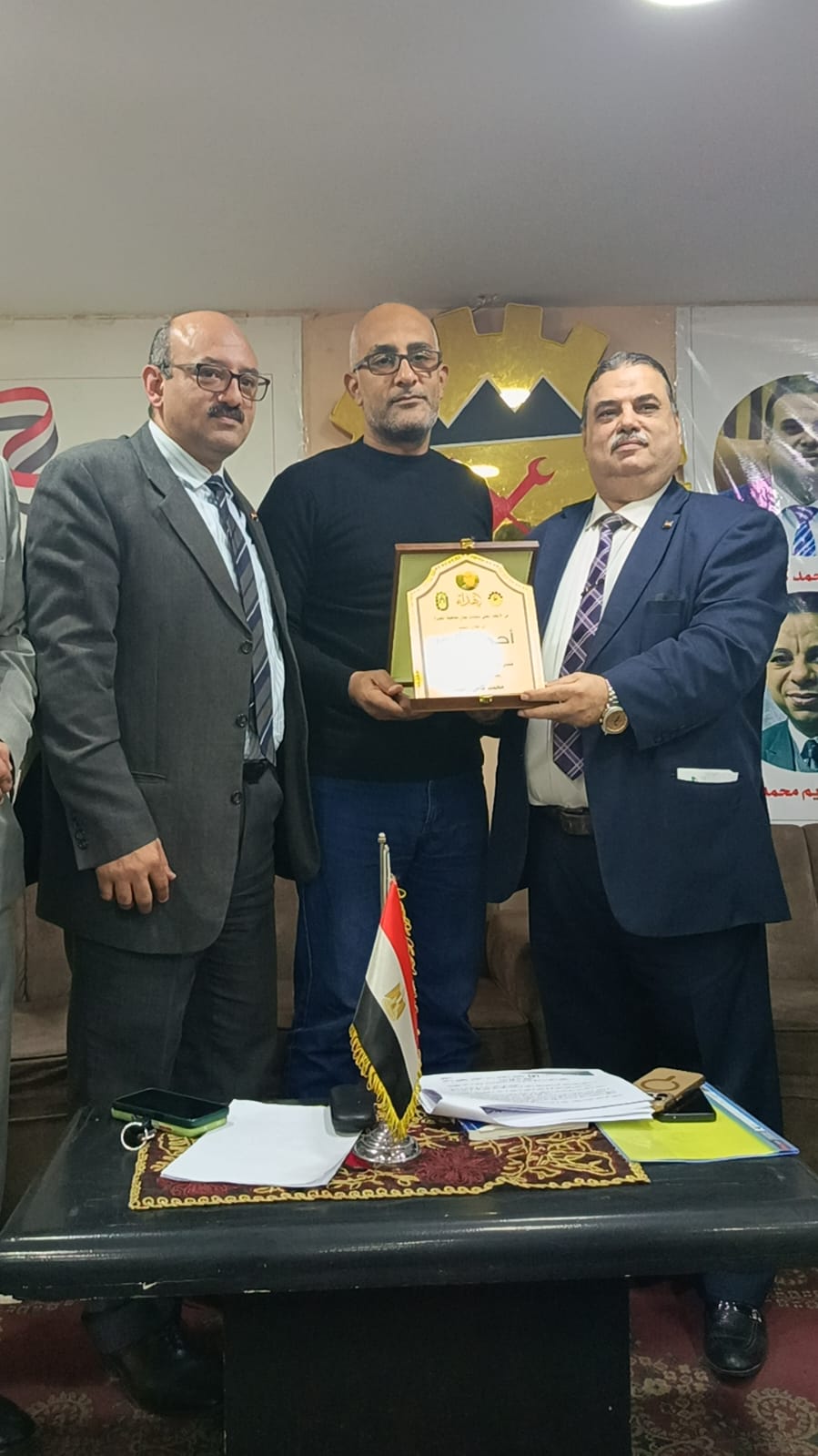 شهدت فاعليات الندوة إهداء محمد كامل احمد رئيس الاتحاد المحلى درع ‘ التميز ” لكلا من المستشار وليد عبد الرازق مدير عام المنظمات النقابية بوزارة العمل وكريم محمد مدير مديرية العمل بمحافظة الجيزة والمهندس سيد زغلول امين صندوق الغرفة التجارية بالجيزة وأحمد انور تقديرا لدورهم التثقيفى ومساندة الطبقة العاملة فى كافة القضايا العمالية
