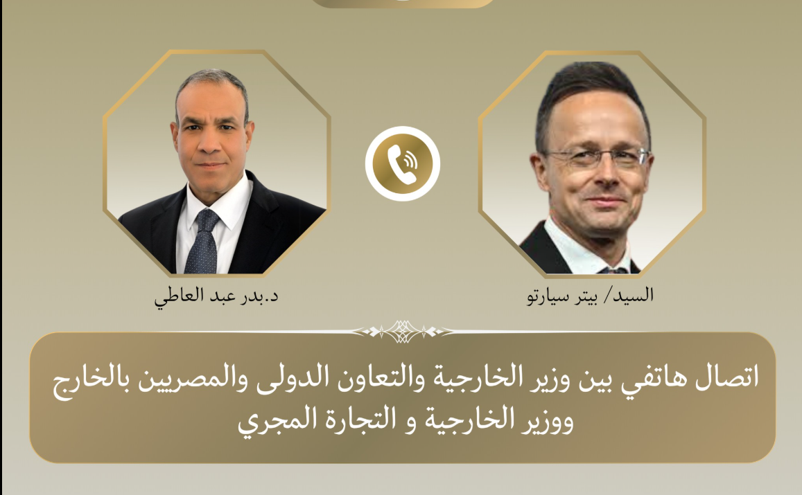أجرى وزير الخارجية والهجرة الدكتور بدر عبد العاطي اتصالا هاتفيا مع وزير الخارجية والتجارة المجري بيتر سيارتو، يوم الثلاثاء 24 فبراير، لبحث سبل تعزيز العلاقات الثنائية وتبادل الرؤى بشأن عدد من القضايا الاقليمية والدولية ذات الاهتمام المشترك.