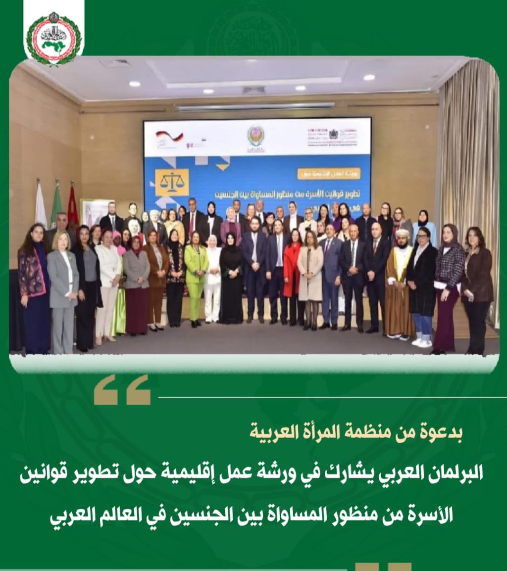 البرلمان العربي يشارك في ورشة عمل إقليمية حول تطوير قوانين الأسرة من منظور المساواة بين الجنسين