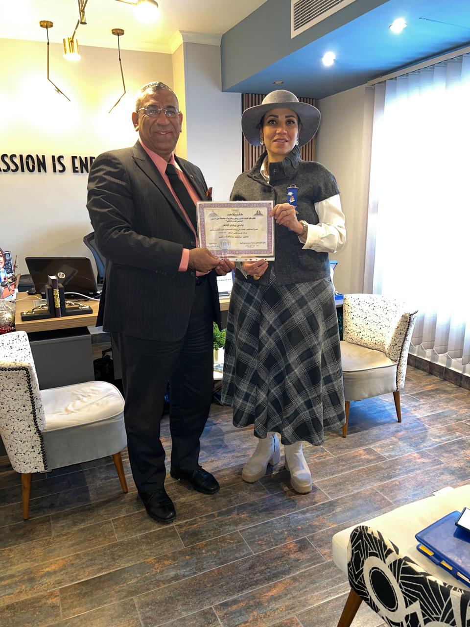 شارك الإتحاد الدولي لرجال الأعمال والمستثمرين العرب بالخارج في معرض لدعم الطالبات في كلية البنات جامعة عين شمس برعاية نادي روتاري العاشر من رمضان برئاسة الدكتورة دينا صادق