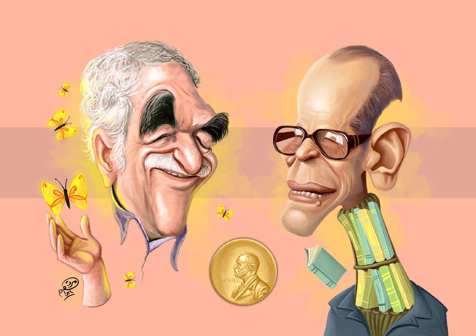 ويضم المعرض مجموعة مميزة من البورتريهات الكاريكاتيرية التي تجمع بين الأديب المصري العالمي نجيب محفوظ وعدد من كبار أدباء العالم، من بينهم الشاعر والروائي الهندي روبندرونات طاغور، والأديب الكولومبي جابرييل جارسيا ماركيز، إلى جانب الأدباء اليابانيين الحائزين على جائزة نوبل كنزابورو أوي وياسوناري كاواباتا.