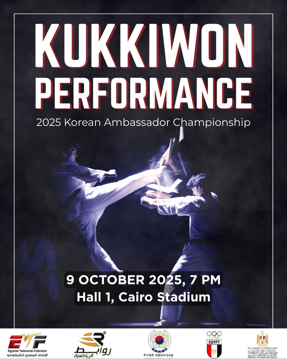 ولإضفاء مزيد من الحماس، تشهد البطولة عرضًا خاصًا لفريق كوكيوون الاستعراضي التابع للأكاديمية العالمية للتايكوندو، المعروف عالميًا ببراعته التقنية وانضباطه العالي. ويمثل العرض في القاهرة المحطة الأولى في جولته الإقليمية التي تشمل تونس والمغرب.