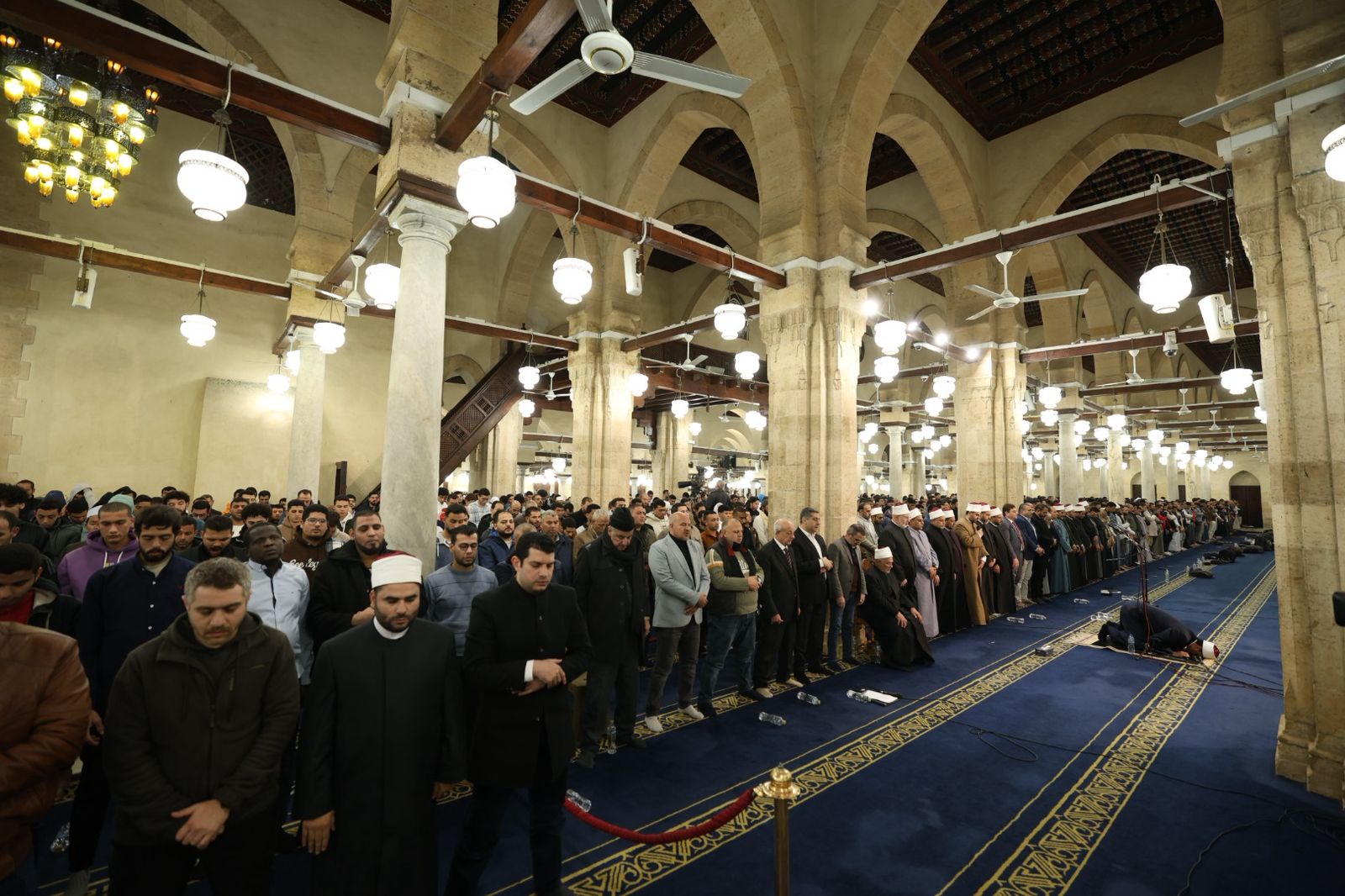 وتقدَّم صفوف المصلين فضيلة الدكتور محمد الضويني، وكيل الأزهر الشريف، وفضيلة أ.د. سلامة داود، رئيس جامعة الأزهر، وفضيلة الشيخ حسن عراقي، وكيل لجنة مراجعة المصحف، إلى جانب عدد من علماء الأزهر وقياداته.