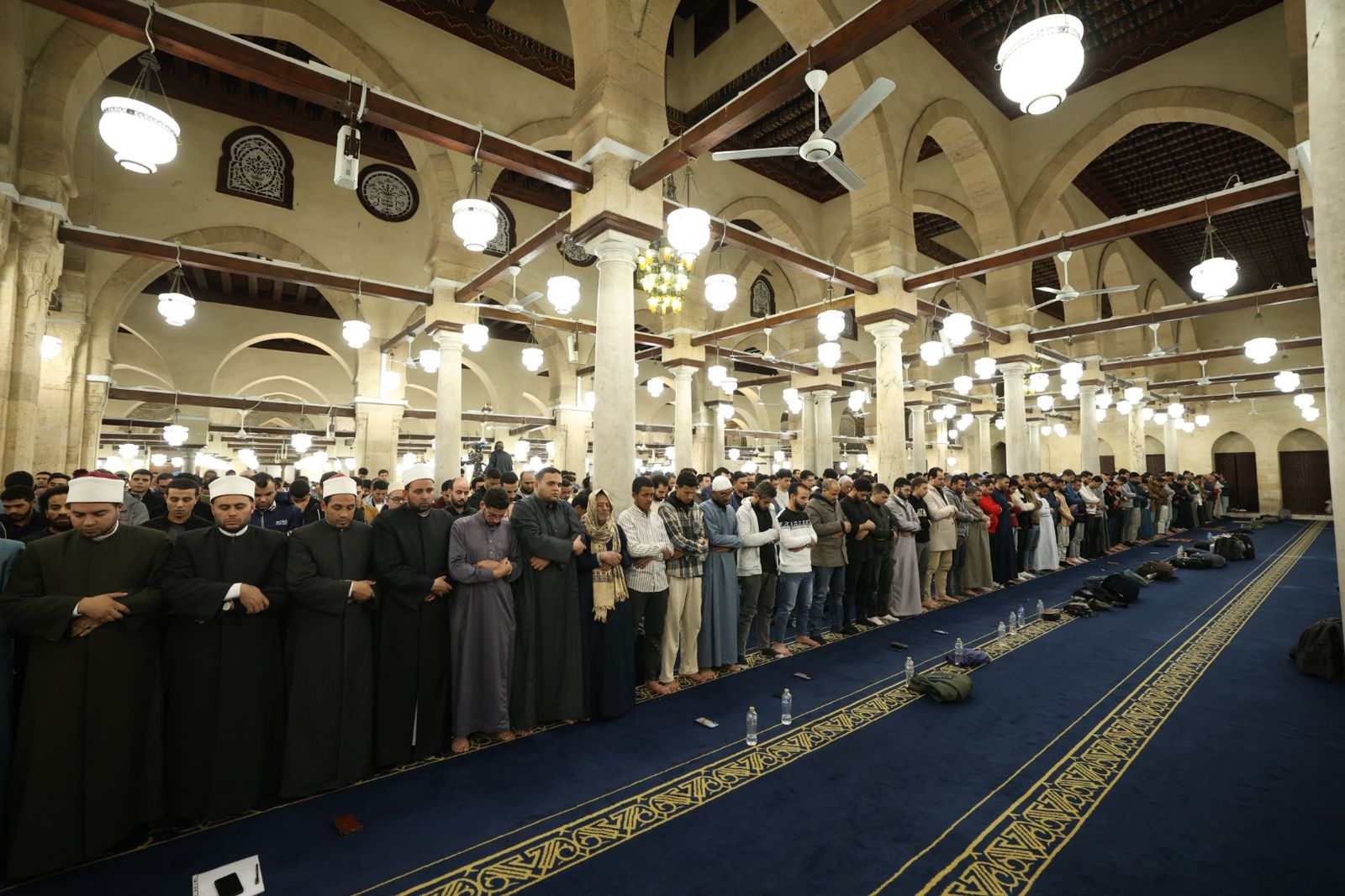 اصطف آلاف المصلين، مساء اليوم الاثنين، في الليلة السادسة من ليالي شهر رمضان لعام 1447هـ، لأداء صلاتي العشاء والتراويح بالجامع الأزهر، حيث امتلأ الصحن والأروقة برواد بيت الله من مختلف المحافظات، إلى جانب الطلاب الوافدين، في أجواء إيمانية عامرة بالخشوع وتلاوة القرآن الكريم.
