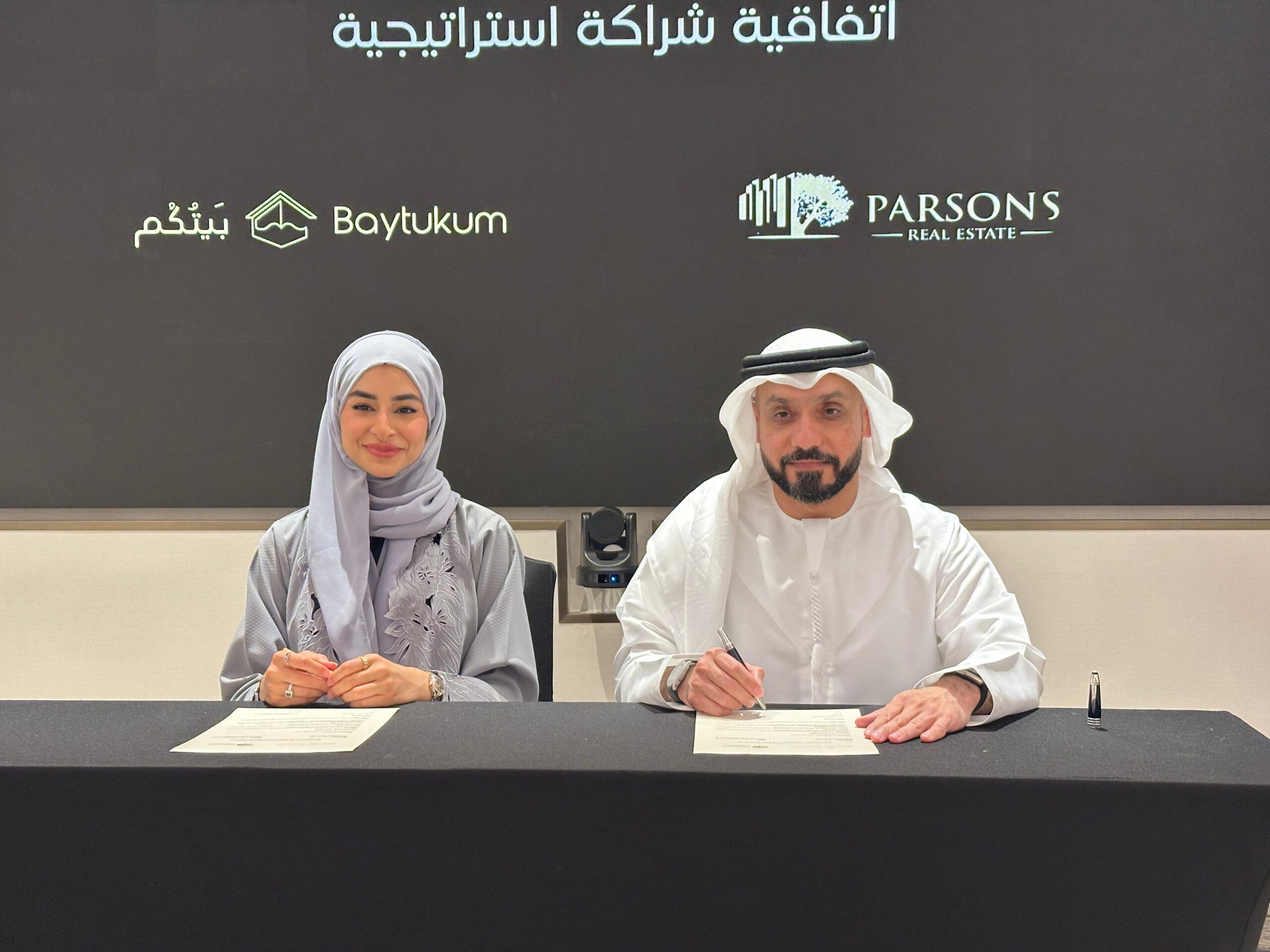 وقّع الاتفاقية محمد الجناحي الرئيس التنفيذي شركة بارسونز العقارية، ولطيفة بن حيدر، المؤسس لشركة “بَيتُكم”.