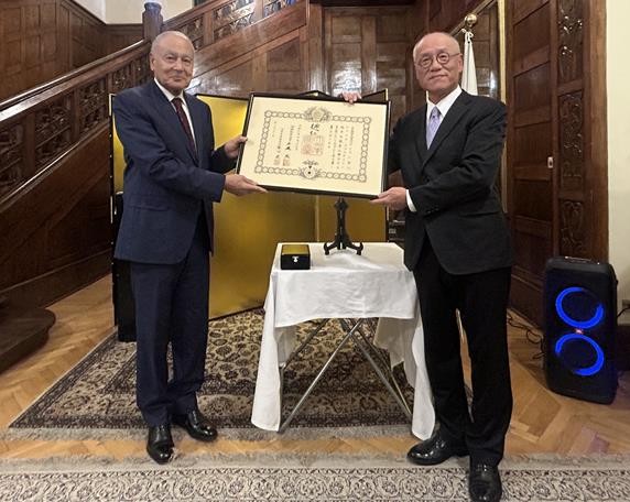 أقيم حفل تتويج معالي الأمين العام لجامعة الدول العربية، السيد أحمد أبو الغيط بوسام الشمس المشرقة – الوشاح الأكبر، وذلك بمنزل السفير الياباني بالقاهرة. يُمنح هذا الوسام من جلالة إمبراطور اليابان، وذلك تقديرًا لمساهمات معالي الأمين العام البارزة في تعزيز العلاقات اليابانية – العربية، فضلاً عن إنجازاته في تعزيز علاقات الصداقة الودية بين اليابان ومصر خلال فترة عمله كوزير للخارجية المصرية.