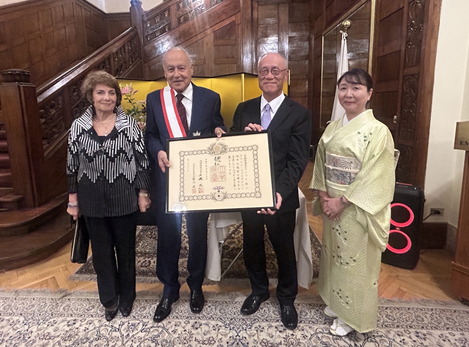 خلال حفل التتويج، وفي البداية، قام السفير إيواي بتعريف السادة الحضور بإنجازات معالي الأمين العام السابق ذكرها، كم تقدم له بالتهنئة على التتويج بهذا الوسام المرموق، وأعرب له عن تطلعه إلى مواصلة مساهماته في تعزيز علاقات الصداقة الودية مع اليابان.