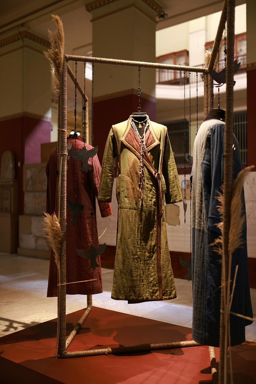 ● تقدّم المصممة الأرمينية-اللبنانية سيلفا أسيليان مجموعة معاطف التي تمزج بين التقليد والابتكار. تتميّز الأقمشة بنقش مستوحى من شجرة النخيل بألوان الأخضر والأزرق والبنفسجي والأصفر، في تجسيد لعناصر الماء والأرض والسماء.حيث أسست مشغلها الخاص قبل أن تشارك في تأسيس َنجَاَدة مع شريكها الراحل ميشيل باستوري. كما يعمل نول “نجادة” على تدريب حرفيين جدد، تكريمًا لإرث شريكها الراحل، وقالت أسيليان: “يتيح لنا العرض في المتحف المصري منصة لعرض أعمالنا ضمن سياق يجسّد سعينا الدائم نحو الحداثة داخل إطار التقليد والعالم القديم.”