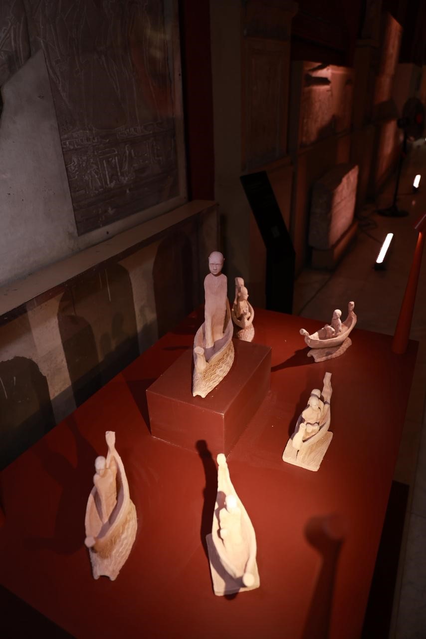 ● يقدّم جان-ماري أبريو عمله «سفن النيل»، الذي يحيي الإيماءة الأسطورية القديمة لصياغة الطين. بالتعاون مع خزافين من الفيوم، صاغ أبريو قوارب ترابية تستحضر قوارب الشمس في مصر القديمة، مجسدةً شخصيات إنسانية من طمي النيل تنبض بأنفاس الذاكرة واستمرارية الخلق، في تجسيد فني يمزج بين البراعة التقنية والخيال الشعري.