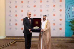 وتناول اللقاء سبل تعزيز العلاقات البرلمانية العربية التركية، حيث أشار “اليماحي” إلى أن هذا هو اللقاء الأول من نوعه بين رئيس البرلمان العربي ورئيس البرلمان التركي، وهو ما يمثل فرصة مهمة لتدشين علاقات برلمانية قوية بين الجانبين، مضيفًا أن التقارب الثقافي والديني والتاريخي والجغرافي بين العالم العربي وتركيا يشكل رصيدًا مهمًا لتعزيز هذا المسار على المستوى البرلماني.