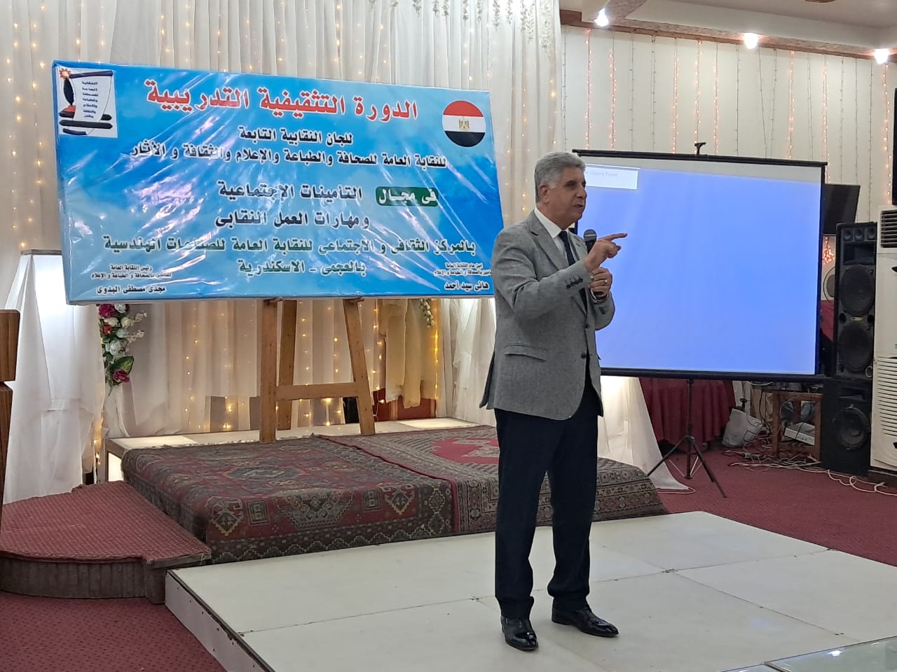 جاء ذلك خلال فعاليات النسخة الثانية من الدورة التثقيفية التي تُنظمها النقابة العامة للصحافة والطباعة والإعلام والثقافة، برئاسة مجدي البدوي نائب رئيس اتحاد عمال مصر، تحت عنوان: “اعرف قواعد عملك”، وذلك بحضور هاني سيد أمين عام نقابة الصحافة والإعلام، وحسين عبد العال أمين صندوق النقابة، ووحيد عثمان أمين عام نقابة الصناعات الهندسية والمعدنية، ولفيف من القيادات النقابية للعاملين بالصحافة والإعلام والثقافة والآثار والصناعات الهندسية والمعدنية.