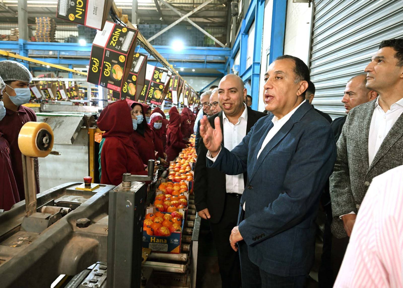 تفقد الدكتور مصطفى مدبولي، رئيس مجلس الوزراء، ومرافقوه، محطة الصواف لتعبئة الموالح والحاصلات الزراعية، وذلك خلال جولته التفقدية التي يقوم بها اليوم بعدد من الشركات الصناعية بالمنطقة الاستثمارية بمدينة بنها، بمحافظة القليوبية.