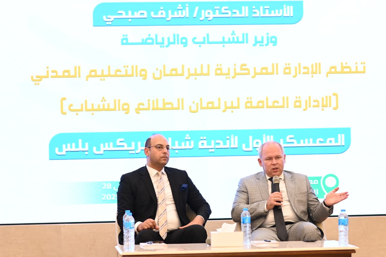 اكد د. فاديم زايتشيكوف مدير المراكز الثقافية الروسية في مصر ان المراكز الروسية في دول البريكس تهتم اهتماما كبيرا بالشباب وتحرص على توفير كافة البرامج المعرفية والمساعدة في تطوير مهاراتهم الشخصية جاء ذلك خلال اللقاء الذى تم مع الشباب المشارك في معسكر اندية شباب بريكس+ الذى اقيم مؤخرا بمعسكر القرش بالإسماعيلية برعاية وزارة الشباب والرياضة، وبحضور وزير الشباب والرياضة د.اشرف صبحي ، ود. عبدالله الباطش مساعد وزير الشباب والرياضة وممثل مصر بمجلس شباب بريكس، كما شارك في افتتاح المعسكر كل من سعد نديم مسئول وحدة الشمول الرقمي والذكاء الاصطناعي، ود.راندا البيطارمدير عام برلمان الطلائع والشباب ، ود.خالد مسعود وكيل اول الوزراة ورئيس قطاع الشباب.