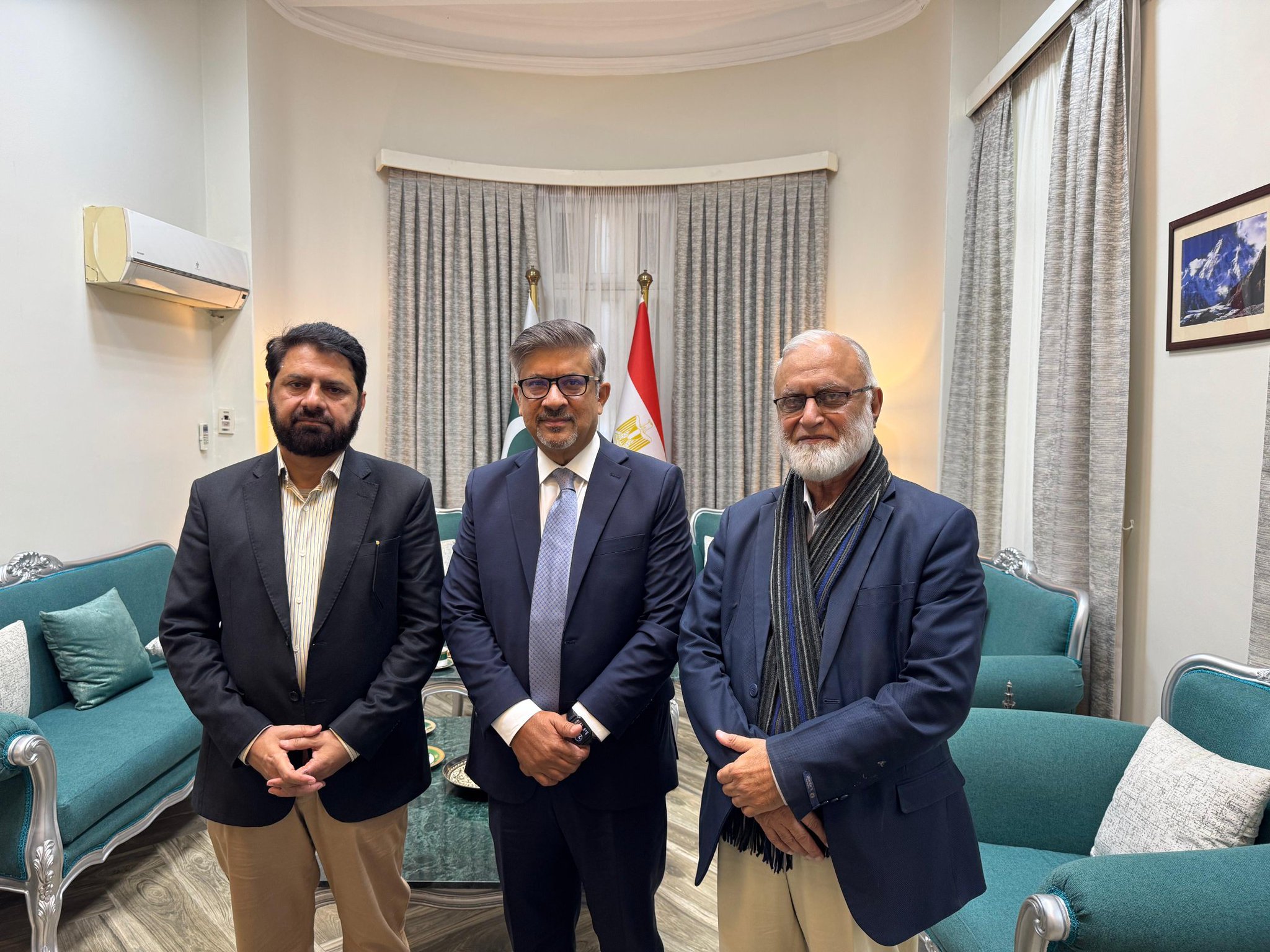 التقى سفير جمهورية باكستان الإسلامية بالقاهرة ، السفير عامر شوكت، اليوم بالدكتور حفيظ الرحمن، رئيس مؤسسة الخدمة في باكستان، وذلك في إطار الجهود الإنسانية المتواصلة لدعم الشعب الفلسطيني.