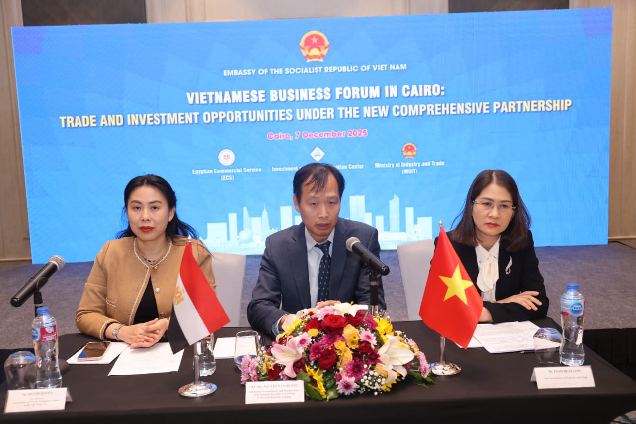 نظمت سفارة فيتنام بالقاهرة بالتنسيق مع مركز الاستثمار وترويج التجارة فى مدينة هو تشى منه (ITPC) وهيئة ترويج التجارة المصرية (ECS)، منتدى الأعمال الفيتنامى: فرص التجارة والاستثمار فى إطار الشراكة الشاملة.