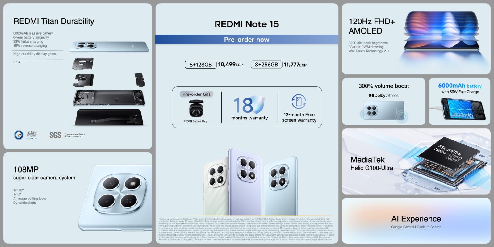 تجمع REDMI Note 15 Series بين الأداء القوي، والتصوير المتطور، وعمر البطارية الممتد، والميزات الذكية، لتكون خيارًا مثاليًا للمستخدمين الباحثين عن هاتف ذكي يقدم أقصى قيمة مقابل السعر. إنها سلسلة تمثل التوازن بين التكنولوجيا المتقدمة والإتاحة الفعلية، مع تجربة استخدام متكاملة تلبي متطلبات العصر الرقمي.