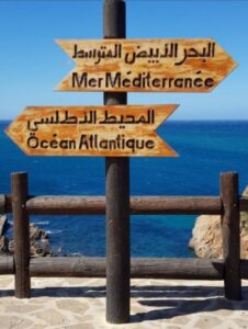 ومعناها أن الله سبحانه أطلق البحرين يلتقيان، لكن جعل بينهما حاجزًا لا يطغى أحدهما على الآخر، في إعجاز علمي وروحي يراه الزائر بعينيه عند سواحل طنجة، حيث يمتزج الأزرق بالأزرق… دون أن يذوب أحدهما في الآخر.