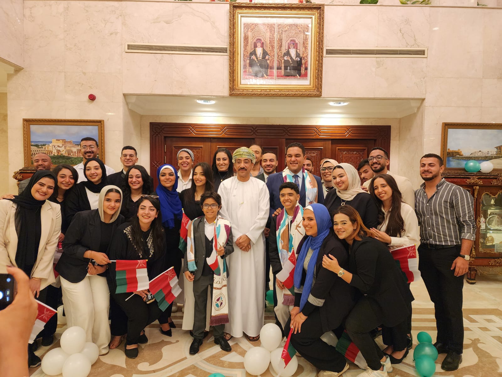 “باسمي وباسم أعضاء سفارة سلطنة عُمان في جمهورية مصر العربية الشقيقة، أرحّب بكم جميعًا. ويسرّنا أن نتقدّم بخالص الشكر والتقدير لفرقة الهارموني على مبادرتها الكريمة في تقديم التحية والتهنئة للسلطنة بمناسبة يومها الوطني المجيد.