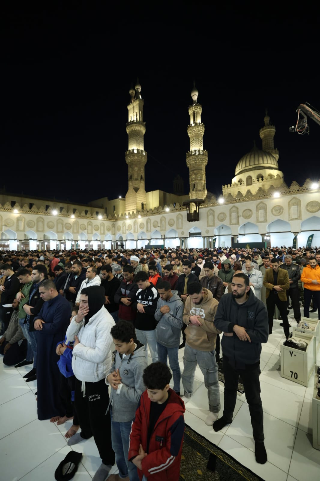 وأمَّ المصلين في صلاة العشاء الطالب الحسن حسام، قارئًا برواية حفص عن عاصم من سورة العنكبوت، فيما أمَّ المصلين في صلاة التراويح الدكتور أسامة الحديدي، برواية ابن وردان عن أبي جعفر المدني من سورة الروم، وشاركه في الطالب الشيخ أحمد زكي، قارئًا برواية ابن ذكوان عن ابن عامر الشامي من سورة الروم، كما شاركهم الشيخ عمرو فاروق قارئًا برواية شعبة عن عاصم الكوفي من سورة لقمان، في مشهد يعكس عناية الأزهر بإحياء سنة القراءات القرآنية المتواترة وإتاحة الفرصة للقراء الشباب للمشاركة في إمامة المصلين.