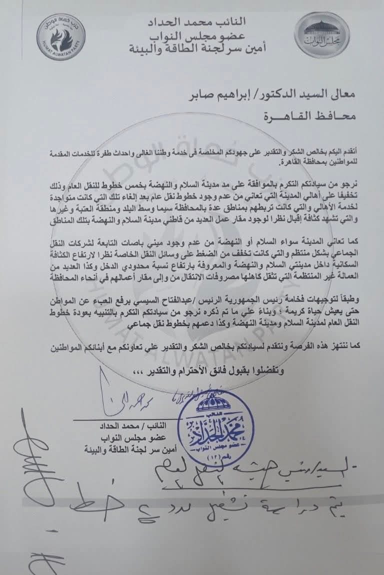 واستجابة لشكاوى الأهالي بشأن نقص المواصلات، وجه المحافظ بدراسة تشغيل خطين جديدين لأتوبيسات النقل العام بشكل مبدئي، لربط مدينة النهضة بالمناطق الحيوية، بما يسهم في تخفيف معاناة المواطنين وتحسين حركة التنقل، على أن يبدأ التشغيل في أقرب وقت ممكن.