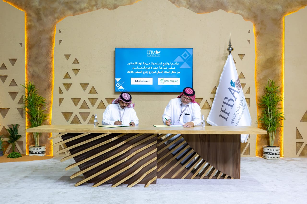 وجرت مراسم توقيع الصفقة في مقر المزاد، بحضور ممثلًا عن شركة “نوفا للصقور” شديد الرشيدي، فيما وقّع عن المزرعة الكندية مالكها جون لوجين الابن.
