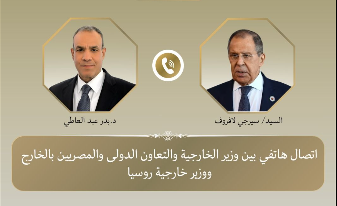أجرى وزير الخارجية المصري الدكتور بدر عبد العاطي اتصالا هاتفيا مع نظيره الروسي سيرجي لافروف، يوم الثلاثاء 24 فبراير، في إطار التنسيق المستمر بين البلدين حول العلاقات الثنائية والقضايا الإقليمية والدولية ذات الاهتمام المشترك.