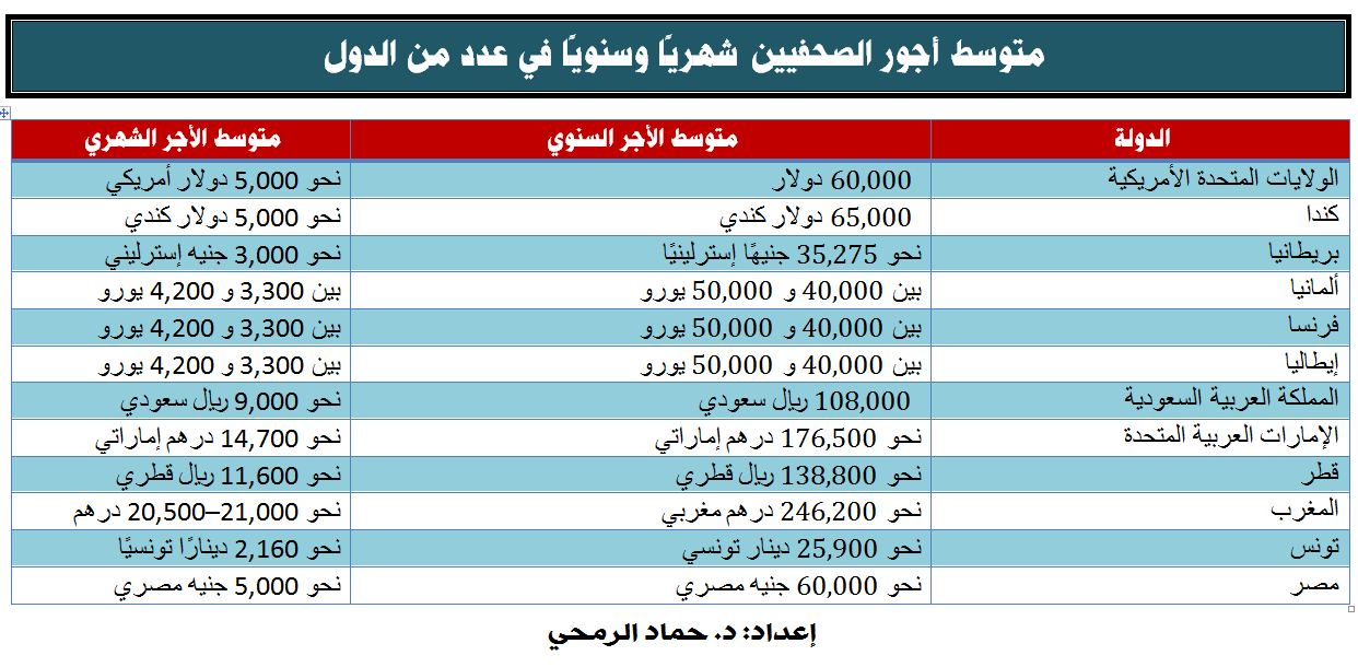 أجور الصحفيين في دول الخليج والمغرب العربي!!