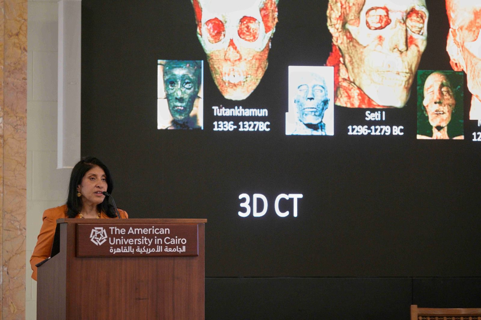من أبرز فعاليات اليوم الثانى للمؤتمر محاضرة ألقتها الدكتورة سحر سليم، أستاذة الأشعة في كلية الطب بجامعة القاهرة والمؤلفة المشاركة لكتاب “مسح الفراعنة”، حيث استعرضت كيف تسهم تقنيات الأشعة المقطعية وإعادة بناء ملامح الوجه في إحداث ثورة في فهمنا لمصر القديمة.