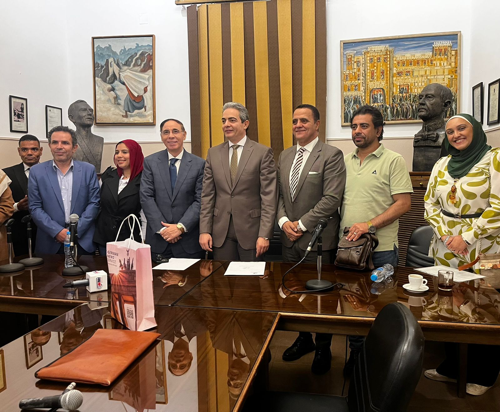 وفي لفتة تقديرية، كرّمت النقابة العامة لاتحاد كُتّاب مصر نقيب الإعلاميين تقديرًا لدوره البارز في تطوير الإعلام الرقمي ودعمه للكوادر الشابة، كما هنأته بمناسبة صدور مؤلفه الجديد بعنوان “الأسس العلمية لإدارة المؤسسات الإعلامية والصحفية في مصر”، الذي طُرح مؤخرًا خلال معرض القاهرة الدولي للكتاب.