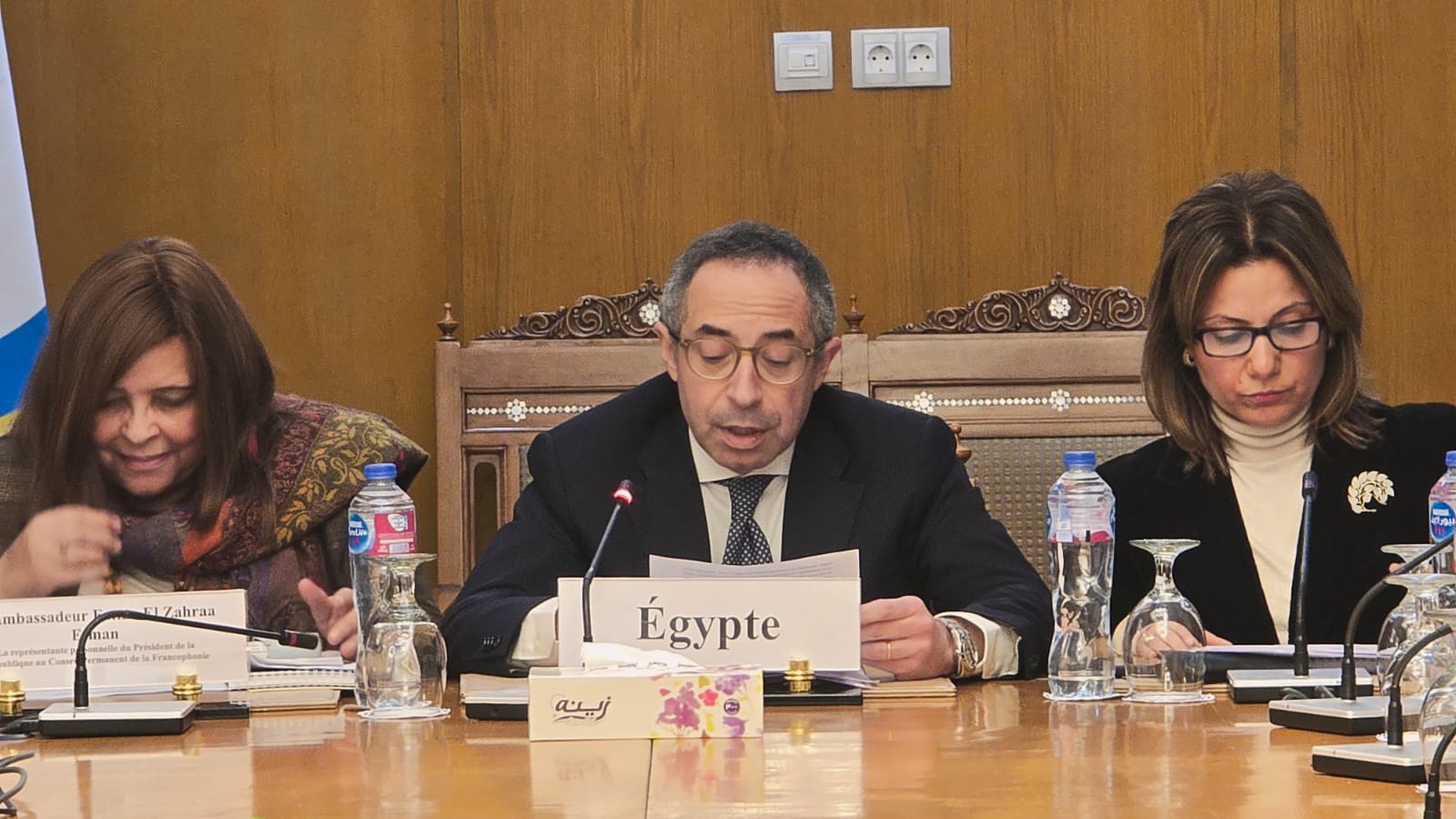 وشارك في الاجتماع السفير عمرو الشربيني، مساعد وزير الخارجية المصرية للشئون متعددة الأطراف والأمن الدولي، والسفيرة فاطمة الزهراء عتمان، الممثل الشخصي لرئيس الجمهورية لدى المجلس الدائم للفرانكفونية. كما شهد الاجتماع تسليم رئاسة مجموعة سفراء الدول الفرانكفونية من ممثل الجمهورية اللبنانية، الرئيس الحالي للمجموعة، إلى السفيرة الرومانية.