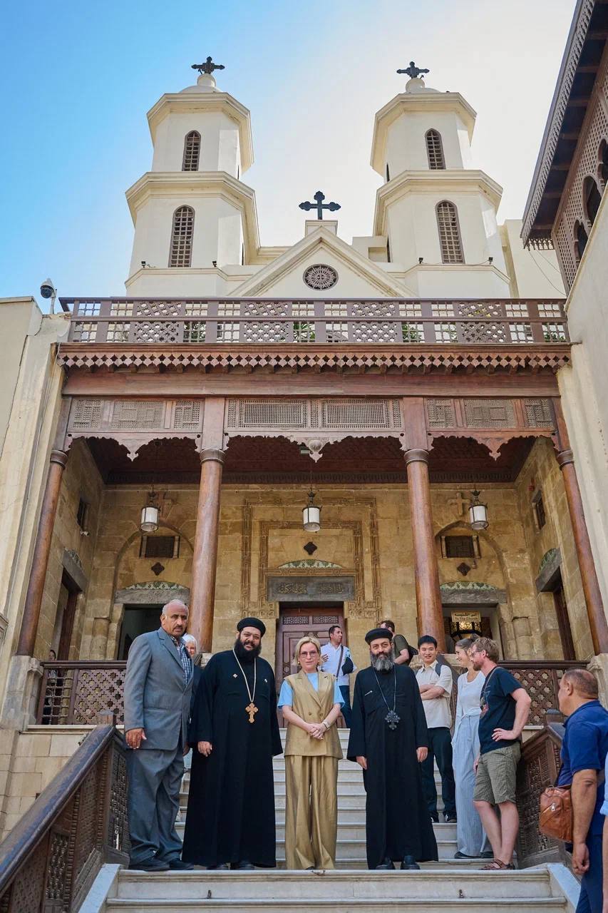 وفي إطار جولتها، زارت الوزيرة الروسية حي مصر القديمة بالقاهرة، حيث تجولت في الكنيسة المعلقة، المبنية على أحد معاقل الحصن الروماني، وتفقدت الأيقونسطاس العريق الذي يُعد من أقدم التحف الدينية في الكنائس القبطية. كما شملت الزيارة كنيسة أبو سرجة، التي تضم المغارة التي يُعتقد أن العذراء مريم والطفل يسوع أقاما فيها أثناء رحلتهما المقدسة إلى مصر، وهي من أهم المزارات المسيحية التي يقصدها الحجاج من مختلف أنحاء العالم.