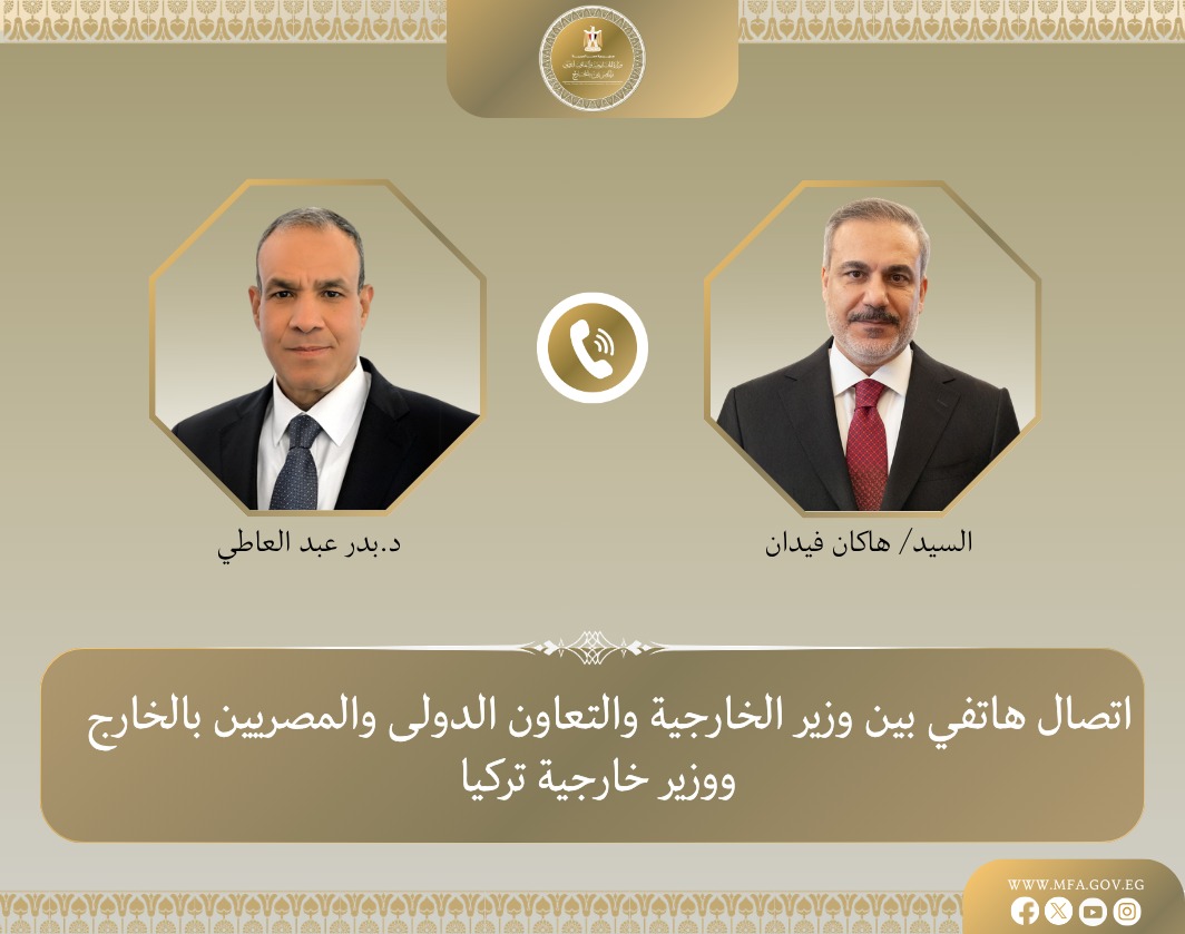 • تلقى د. بدر عبد العاطى وزير الخارجية والتعاون الدولى والمصريين بالخارج، اتصالاً هاتفياً من السيد هاكان فيدان وزير خارجية الجمهورية التركية،  لمناقشة آخر مستجدات الوضع الإقليمي.