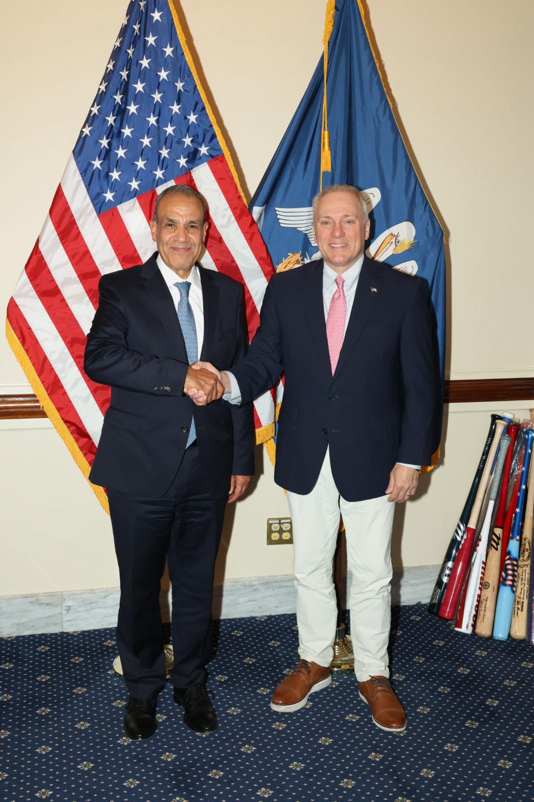 التقى د. بدر عبد العاطي وزير الخارجية والتعاون الدولي والمصريين بالخارج، بالنائب “ستيف سكاليس” زعيم الأغلبية الجمهورية بمجلس النواب الأمريكي، وذلك في إطار لقاءاته مع قيادات الكونجرس خلال زيارته إلى واشنطن.