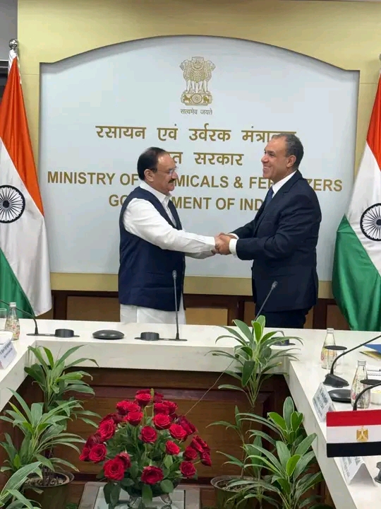 التقى د. بدر عبد العاطي وزير الخارجية والهجرة وشئون المصريين بالخارج بالسيد جاغات براكاش نادا وزير الكيماويات والاسمدة الهندي، يوم الخميس ١٦ أكتوبر في نيودلهي.