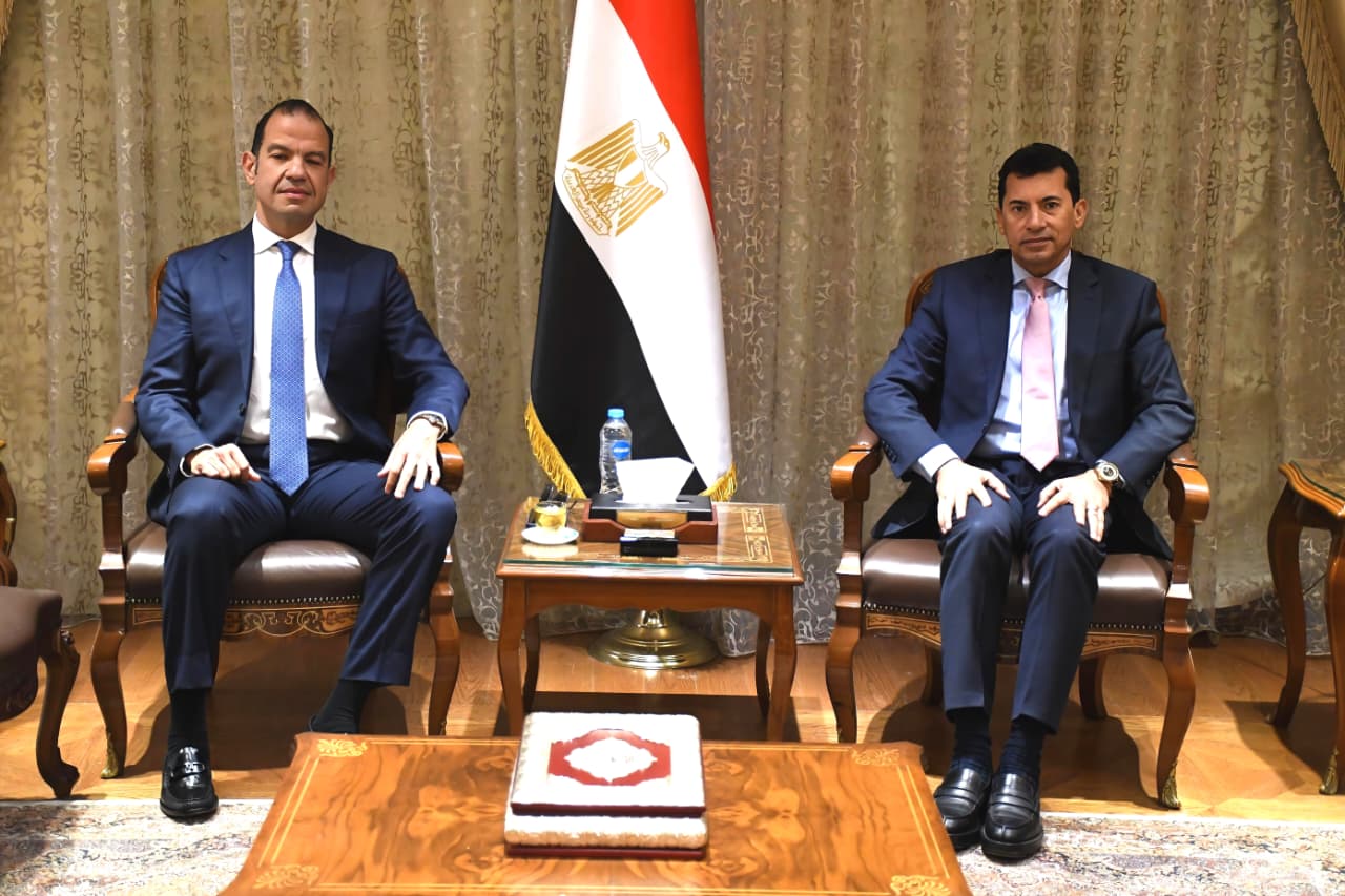 وزير الشباب والرياضة يبحث مع رئيس شركة استادات ونائب رئيس الشركة المتحدة للرياضة دعم الاتحادات والتعاون المشترك