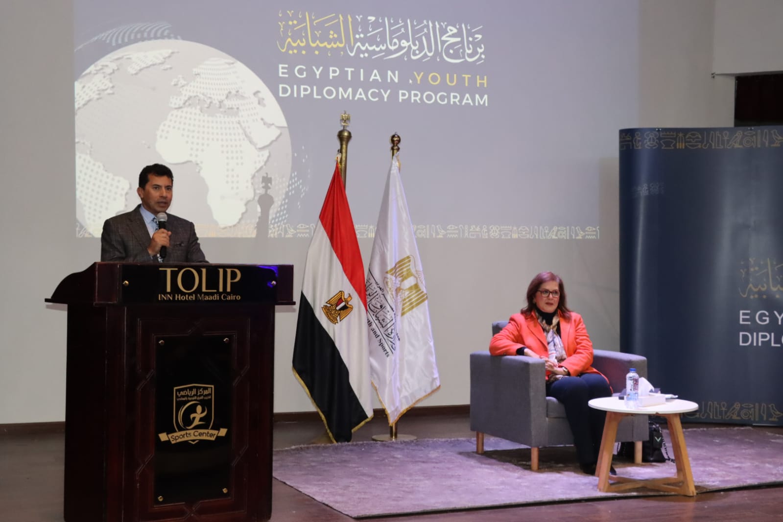 شهد الدكتور أشرف صبحي، وزير الشباب والرياضة، محاضرة ألقتها الدكتورة هالة السعيد، مستشار رئيس الجمهورية للتنمية الاقتصادية ووزير التخطيط والتنمية الاقتصادية سابقًا، وذلك ضمن فعاليات النسخة الرابعة من برنامج الدبلوماسية الشبابية، المقامة بالمركز الأولمبي بالمعادي، تحت عنوان «جهود الدولة المصرية في تعزيز التنمية الاقتصادية».